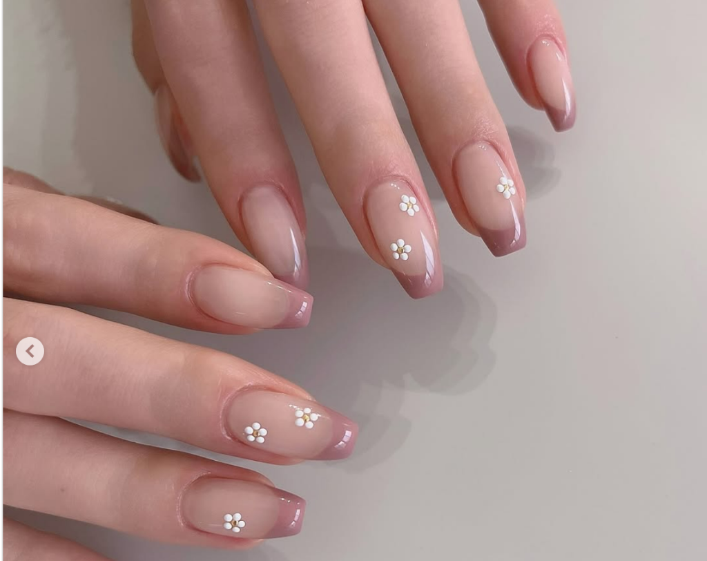 在淺夏美甲的基礎上,搭配細緻的小雛菊圖案,通過簡約卻精緻的筆觸勾勒出花瓣與花蕊,展現出清新脫俗的田園風情。小雛菊不僅象徵著純真與希望,還與春天的氛圍相得益彰,讓指尖仿佛綻放出自然的生機與活力。這款花卉設計巧妙地運用了簡約風格,避免過於繁複的裝飾,卻又能完美點綴整體美感,為手部增添一抹溫柔細膩的氣息。整體造型既不失清新,又充滿詩意,完美演繹了春日的自然韻味與細膩的女性魅力。這樣的設計非常適合追求低調卻又不失精緻感的女性,無論是日常穿搭還是特別場合,都能讓指尖散發出柔和的光彩。